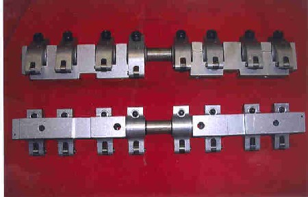 These are Erson Roller Rocker Assemblies. The Billet Rockers are made of 7075-T6 extruded Aluminum and include roller bearings to prevent galling. The Shafts are made of Premium 8620 Steel Rod, gun drilled, annealed and centerless ground. This system incorporates end support and will allow the use of up to 800 lbs of spring pressure at .800" lift without problems. Please order number 918502 for Ford 390, 428CJ or 427 LR Heads. Order number 918503 for Edelbrock Heads, MR or TP Heads with wider Valve spacing. Fully assembled. |